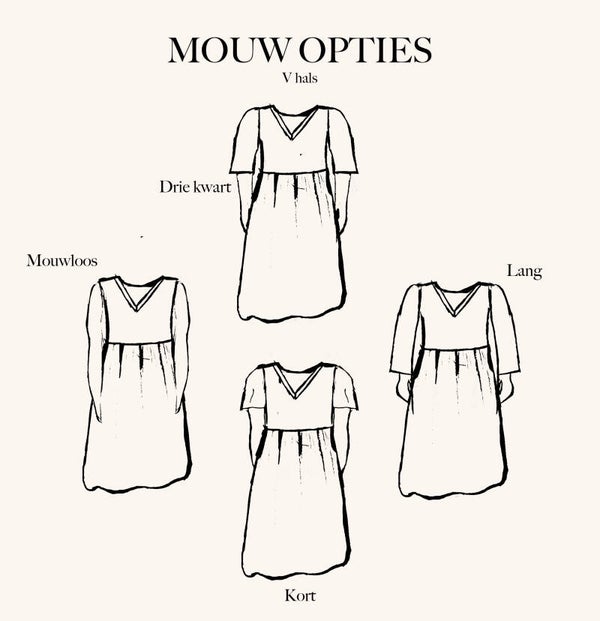 Het is bij deze jurk mogelijk om de lengte van de mouwen te kiezen. Kies uit mouwloos, kort, drie kwart of lang.