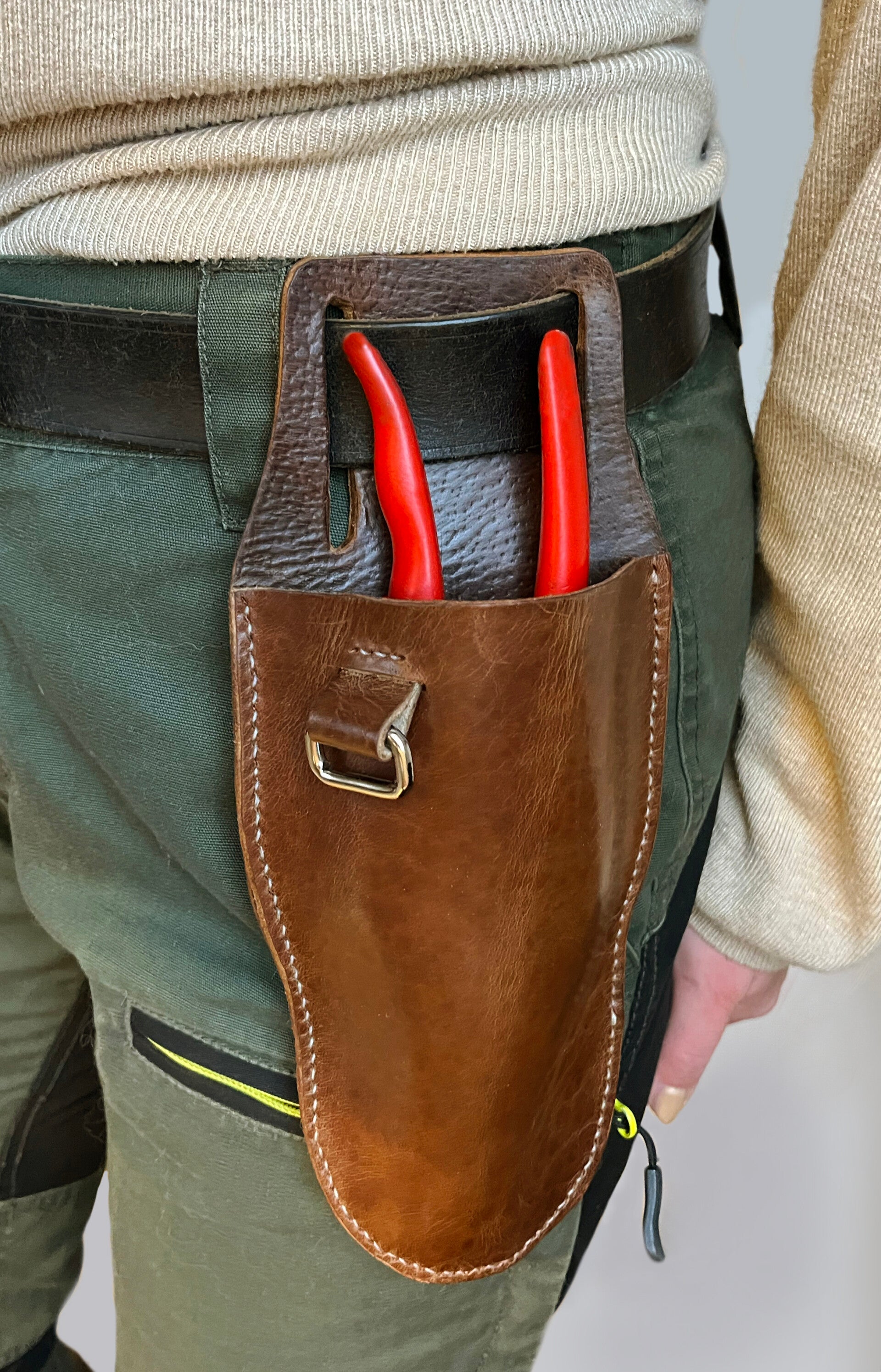 Handgemaakte accessoire van leer voor aan een broekriem. Onwijs handig om zowel tuin als andere tools in te bewaren tijdens het werken!