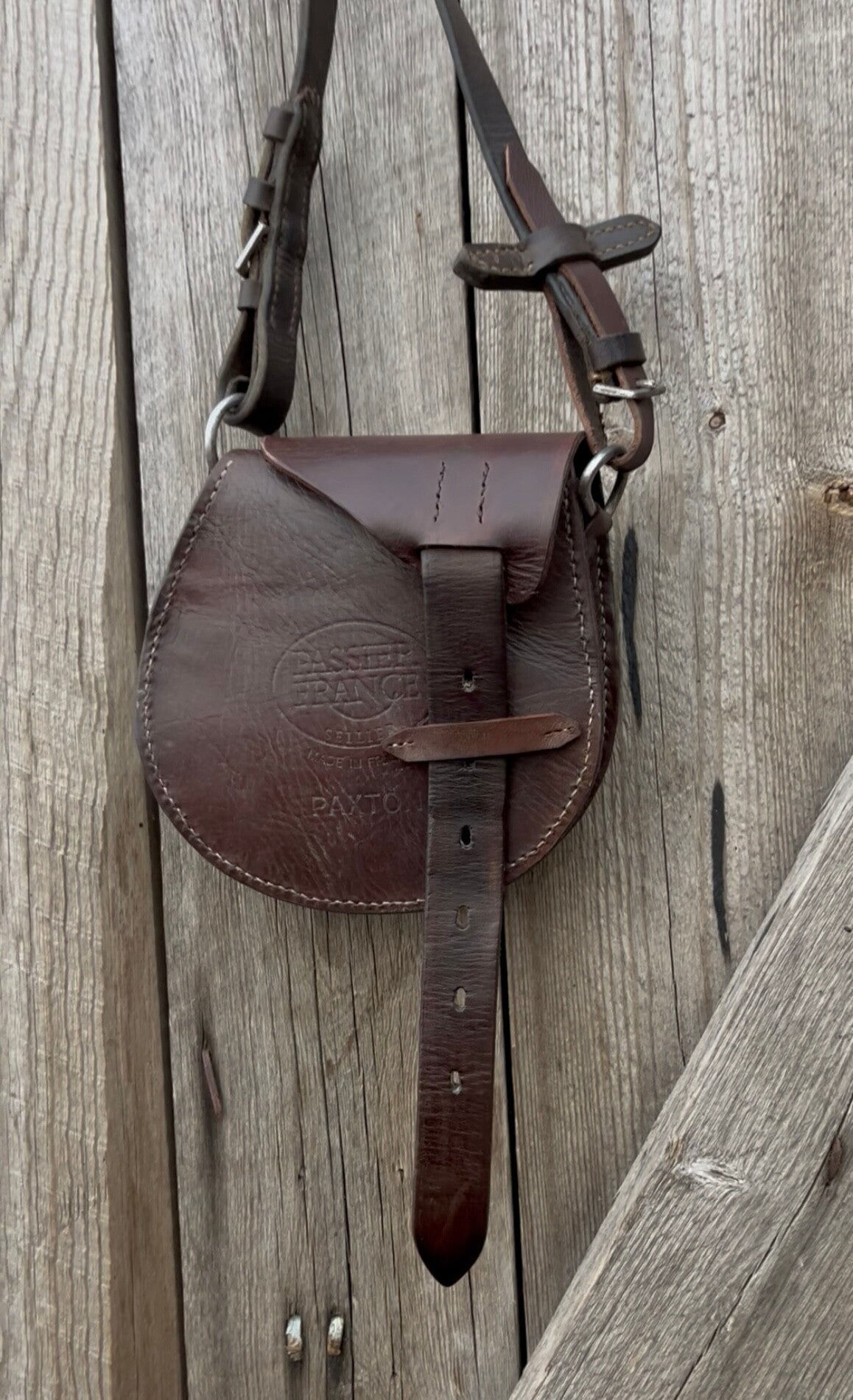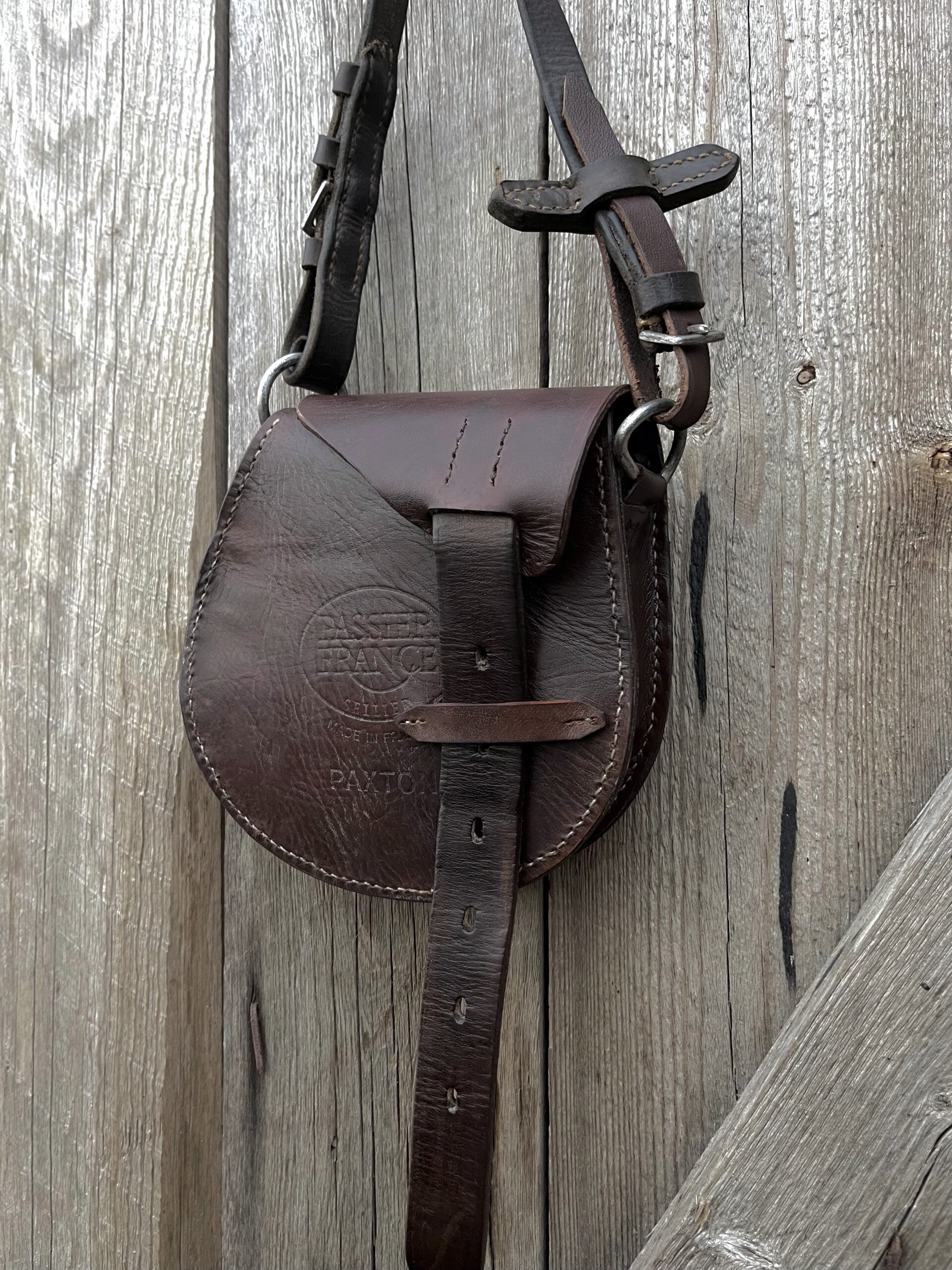 Lederen tas met een rustieke uitstraling. Volledig handgemaakt van hergebruikt, echt zadelleer, in dit geval veel gebruikt van de singelstoten. Bruin leer. Er zit momenteel een lang hengsel aan maar indien gewenst kan dit aangepast worden voor verzending (zonder meerprijs). Neem hiervoor even contact met mij op. Kleinere variant tas zoals weergegeven in de foto's. Hierin passen bijvoorbeeld een telefoon en portemonnee.